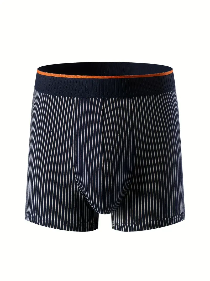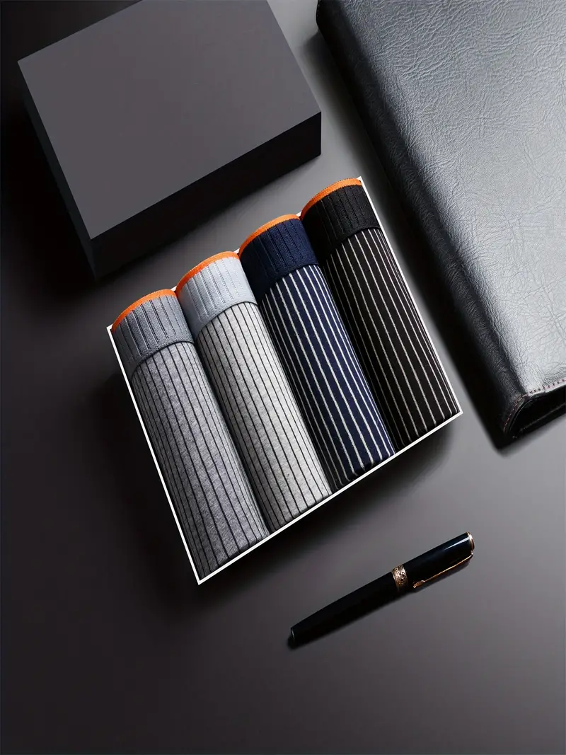 4pcs Men's Boxers Briefs, Casual Plain Color Striped Long Boxers Panties, Breathable Comfy Underpants For Youth Teen, Men's Underwear (Smaller Size)